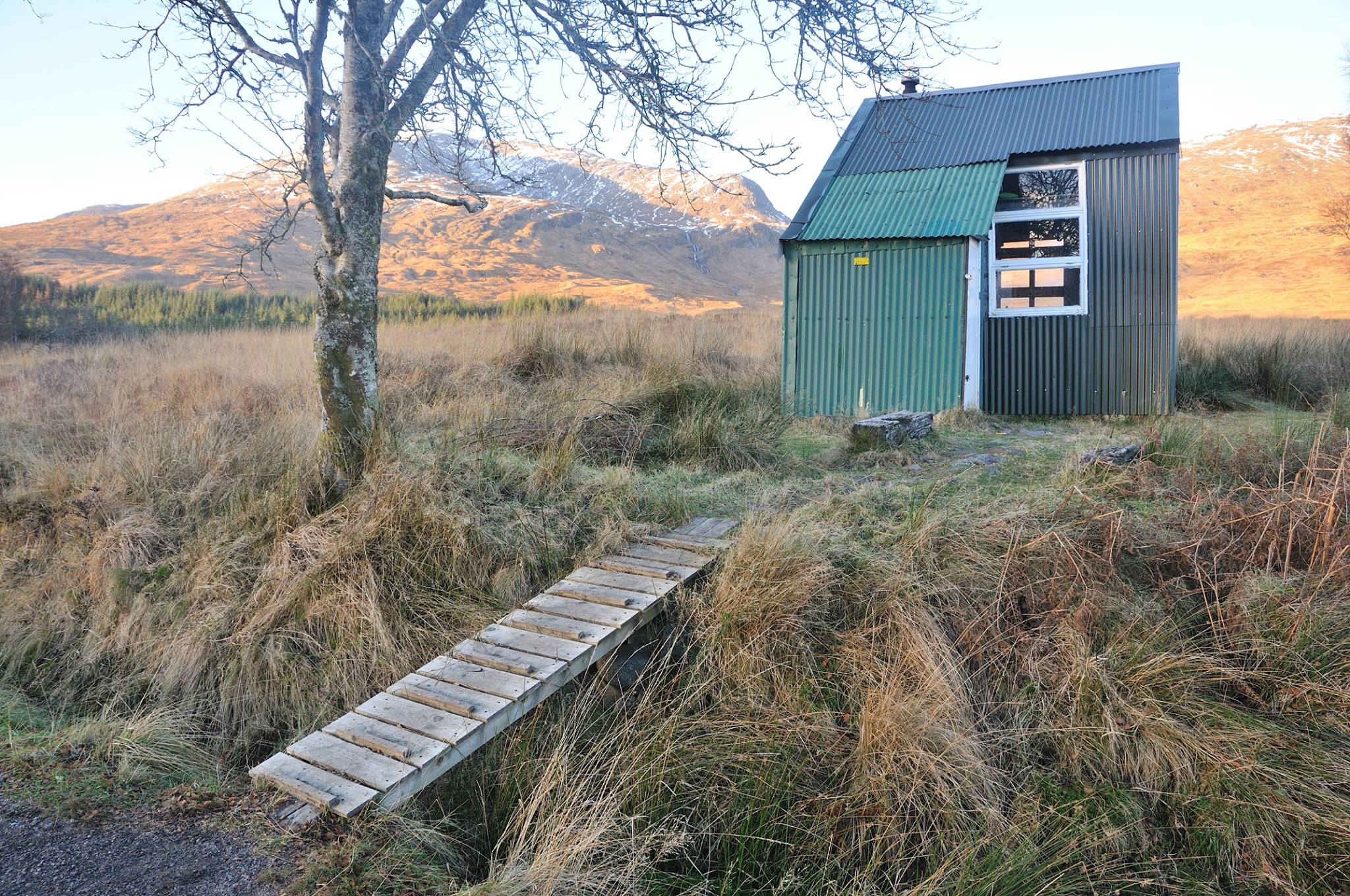 Clashgour is situated beneath Stob Ghabhar at the southern end of the Blackmount Estate. The Glen Kinglass and Bridge of Orchy hills are accessible by foot and it is near to the West Highland Way . Glencoe is only 30 minutes away by car from Victoria Bridge. The corries of Stob Ghabhar and Beinn an Dothaidh can offer Winter climbing of all standards.There are some superb swimming pools upstream of the hut , and it is also handy for several rough cycling routes. The nearest pint may be had at the Inveroran Hotel (may sometimes be closed in winter), some 40 minutes walk from the hut. Bridge of Orchy is served by both bus and train routes, and the nearest shops are at Tyndrum, 6 miles south of Bridge of Orchy.